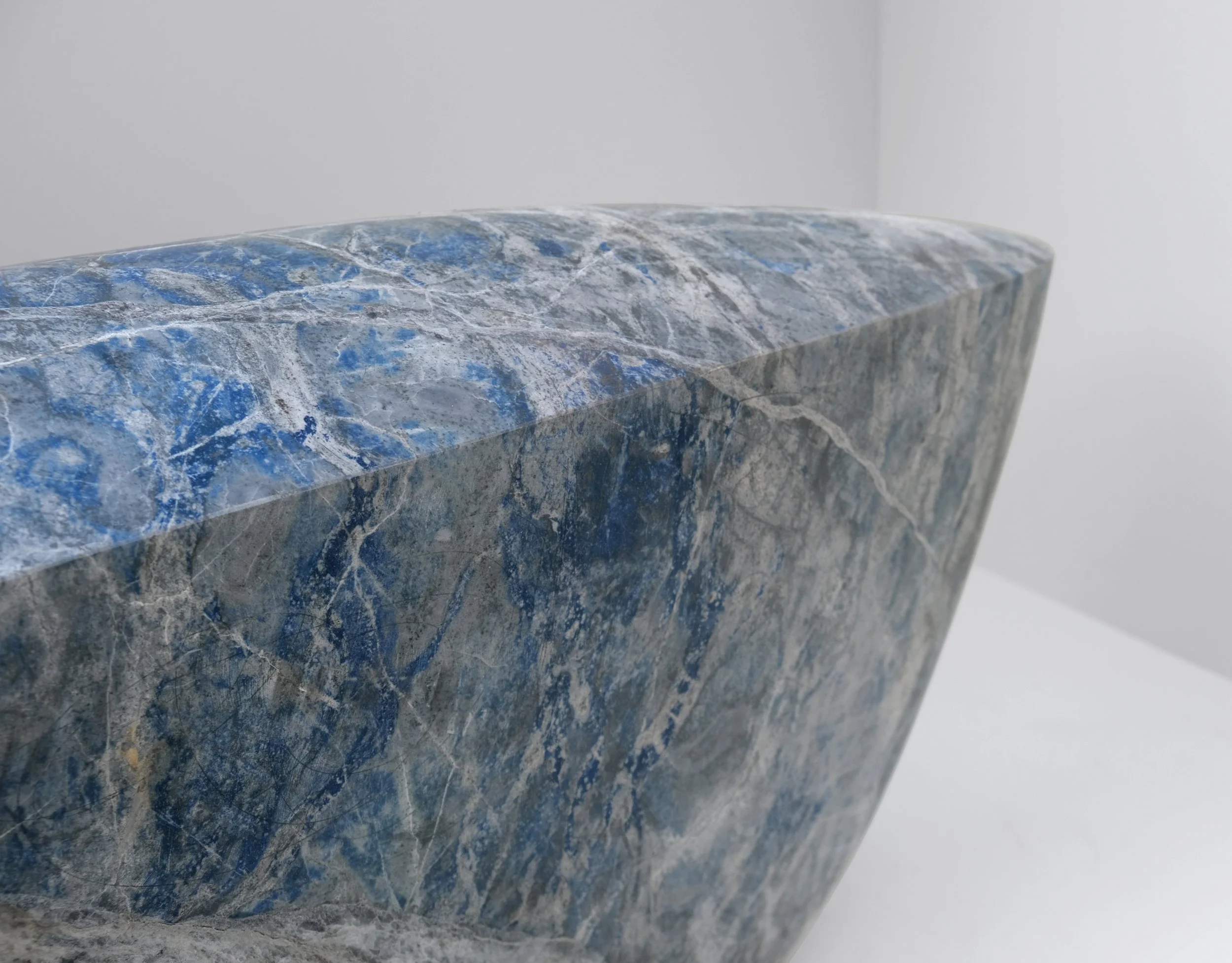 Encuentros is a series of thirteen large-scale sculptures, hand-carved in lapis lazuli and wood, laid out at ground level. One might try to decipher whether these pieces emerge from design, from art, or from a creative gaze that traverses both disciplines. But perhaps it is more compelling to begin from the space itself and ask about that stone sitting in the garden. Is it a blue object inhabiting a park? Is it an artwork that disrupts the flow of movement? Or is it just an unassuming rock? Is it a seat, a sculpture, or an invitation to climb? Is it a material exploration, a tribute to the Chilean land, a reclaiming of lapis lazuli—or simply a polished piece of wood? Is it delicate or forceful? Does the surface rule, or the edge? Is it curved or straight, does its geometry flow, or does the ovoid shape intensify at the meeting points of its edges? Is its form deliberate or beyond any formal definition? Does it speak of nature, of the artist’s emotions, of the behavior of a specific material, or is it a whimsical digression that, through a touch of mastery, came to be this way? Is it art, design, beauty or discomfort?